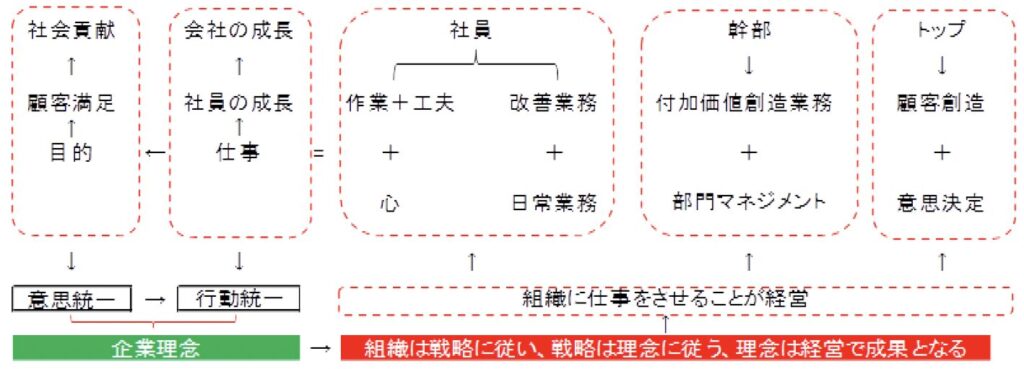 仕事を通じて社会の善循環の可能性を追求し、人間の限りない成長を図り、幸福社会の実現に寄与する。
